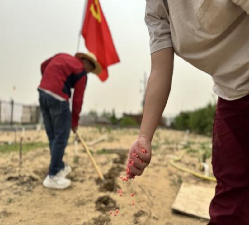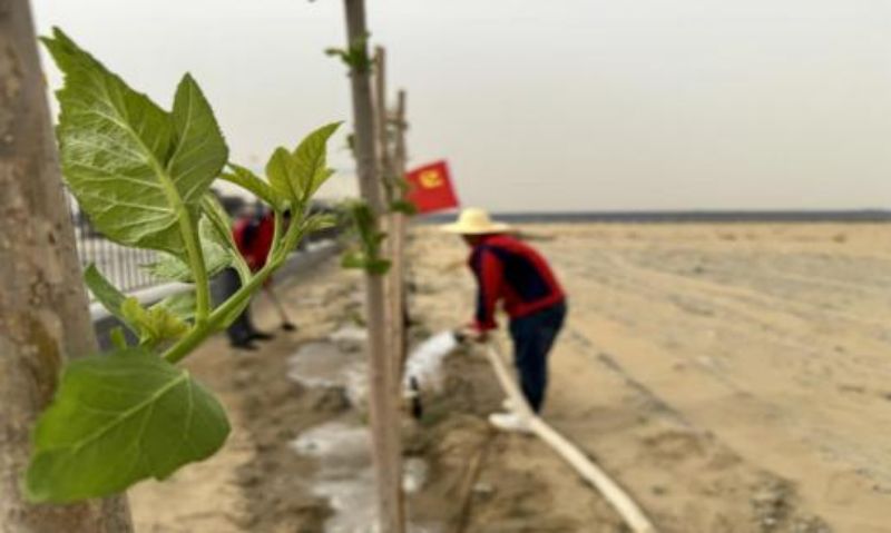 (通訊員:張澤民)春風(fēng)拂綠萬物蘇,植樹造林正當(dāng)時。為進一步美化工作環(huán)境,以實際行動踐行植綠、護綠、愛綠的文明新風(fēng),近期,風(fēng)能公司第四黨支部組織電站全體黨員職工開展了植樹造綠活動,在沙漠中撒播綠色希望。