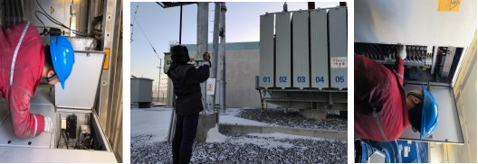 在暴風(fēng)雪期間,風(fēng)電場(chǎng)的應(yīng)急響應(yīng)機(jī)制發(fā)揮重要作用。當(dāng)值人員發(fā)現(xiàn)Y2機(jī)組報(bào)三相電壓不平衡故障時(shí),迅速行動(dòng),經(jīng)現(xiàn)場(chǎng)檢查確認(rèn)為隔離刀閘脫落故障。風(fēng)電場(chǎng)立即組織人員準(zhǔn)備工器具,結(jié)合風(fēng)速預(yù)測(cè)和現(xiàn)場(chǎng)風(fēng)速變化情況,利用倒風(fēng)向的窗口期進(jìn)行了倒閘操作,并利用登高車(chē)對(duì)Y2機(jī)組隔離開(kāi)關(guān)進(jìn)行了處理。整個(gè)過(guò)程,從停送電操作到故障處理,僅用了20分鐘,完美的詮釋了什么叫做“風(fēng)能速度”。