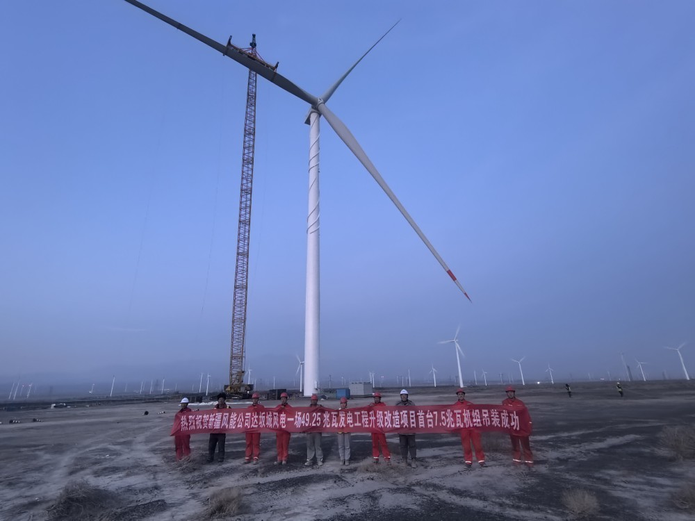 此次吊裝的金風7.5MW風機是針對達坂城風區(qū)特性選定的機型,具備較好的低風速適應能力與高發(fā)電效率。在達坂城穩(wěn)定的風資源條件下,將顯著提升風電場整體運行效能和經濟效益。