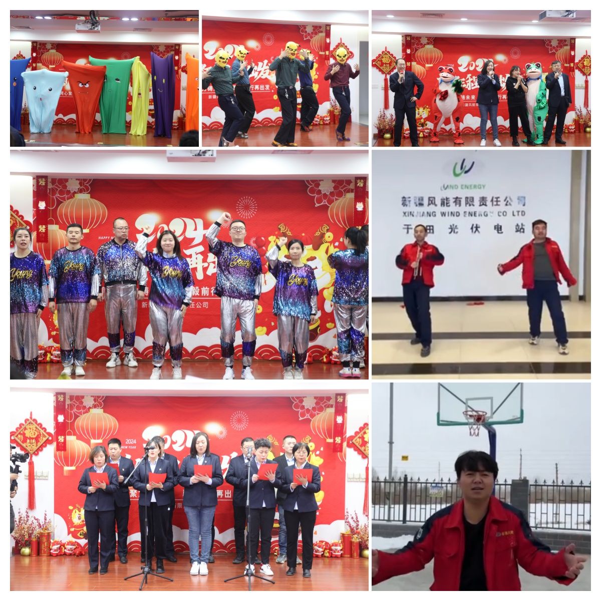 本次活動以奮發(fā)向上、期許未來為主線,在2023年工作片《馭風(fēng)前行 奮楫未來》中拉開了序幕,全體員工通過視頻,共同回顧了公司2023年主要工作成果和亮點(diǎn)成效。活動中,各部門、場站職工自編自導(dǎo)自演的舞蹈、朗誦、歌曲、樂器演奏等多個(gè)節(jié)目精彩紛呈。參演人員多才多藝、各顯神通,歌曲《風(fēng)電郎》慷慨激昂,訴說著風(fēng)能人將熱血和青春奉獻(xiàn)給風(fēng)電事業(yè)的無怨無悔;《大風(fēng)吹》《粉紅色的回憶》《麥西來普》等節(jié)目燃炸全場,“壯漢”版《四小天鵝》令人捧腹大笑,《蛙咔咔咔》《青春不被套》《瘋狂的皮卡丘》《恭喜發(fā)財(cái)》等表演展現(xiàn)了青春的活力,《一起跳舞吧》以朝氣蓬勃的舞步和整齊劃一的隊(duì)形,展現(xiàn)了風(fēng)能人團(tuán)結(jié)向上、積極進(jìn)取的精神風(fēng)貌,獨(dú)唱歌曲《貝加爾湖畔》的悠揚(yáng)深情贏得了觀眾陣陣掌聲。職工互動環(huán)節(jié)《至奮斗的我們》邀請了項(xiàng)目建設(shè)、生產(chǎn)一線的職工們發(fā)表了感言,暢談2023與公司共同奮斗、共同拼搏的心聲。由公司領(lǐng)導(dǎo)傾情演繹的詩朗誦《龍騰向新》彰顯了新時(shí)代新征程風(fēng)能人聚焦高質(zhì)量發(fā)展,創(chuàng)新實(shí)干、團(tuán)結(jié)奮進(jìn)的奉獻(xiàn)擔(dān)當(dāng)。精彩絕倫的節(jié)目將活動一次又一次推向了高潮,喝彩聲、叫好聲響成一片……
