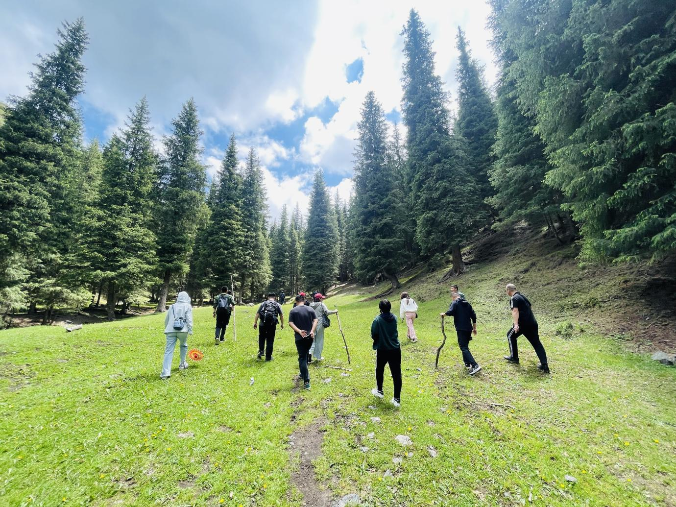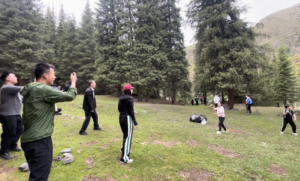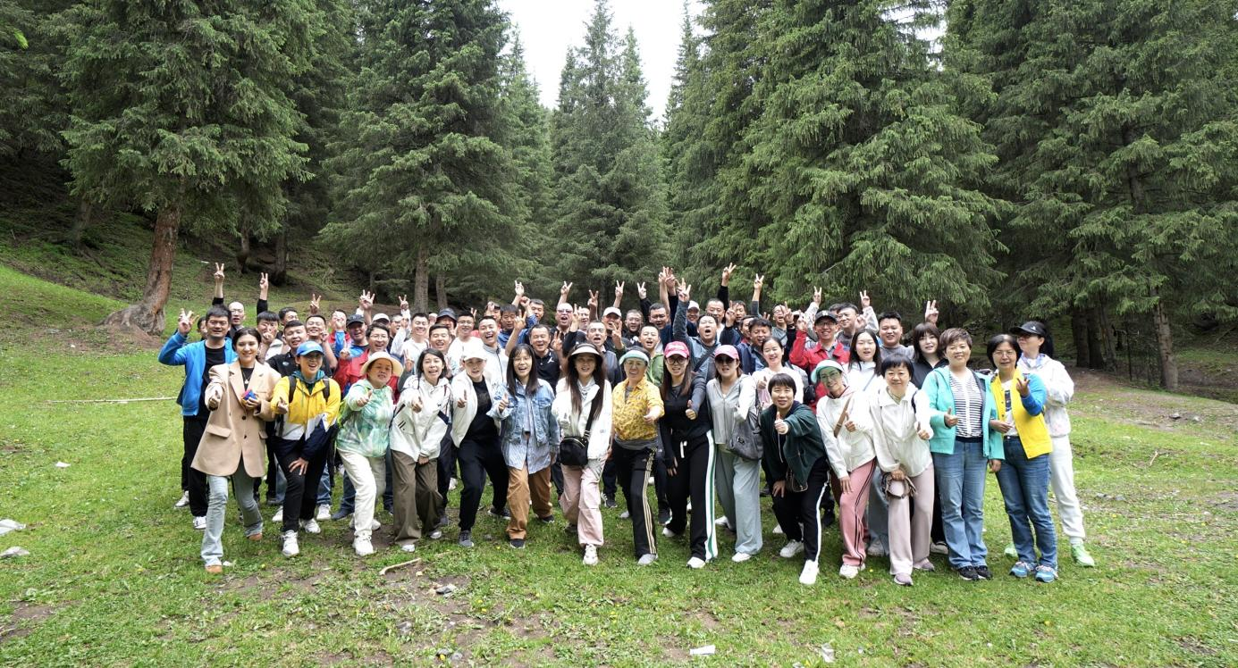天山草場(chǎng)草色如茵、綠意盎然,如畫的風(fēng)景令人心曠神怡。大家健步走在徒步大道上,呼吸著新鮮的空氣,感受著大自然的風(fēng)光。一路上,大家邊走邊聊,時(shí)而駐足欣賞,時(shí)而選景拍照,歡歌笑語(yǔ)如影隨形。本次徒步行程近5公里,大家互相鼓勵(lì)、一往無(wú)前,經(jīng)過(guò)一個(gè)半小時(shí)的努力,終于順利抵達(dá)目的地。