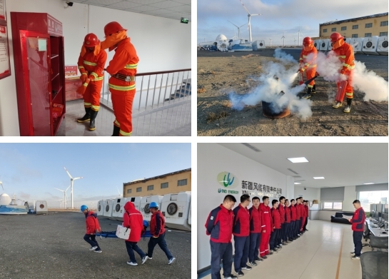 與此同時,消防演練在多個場所同步進行。在達坂城區(qū)域風電場,隨著模擬火災警報的響起,濃煙滾滾,消防應急演練迅速啟動。各小組迅速響應,疏散引導員帶領大家用濕毛巾遮住口鼻,彎腰有序地向安全區(qū)域撤離。滅火小組則快速沖向“起火點”,熟練地操作滅火器進行滅火,整個過程緊張而有序,僅用幾分鐘時間,所有人員安全撤離,“火勢”也得到了有效控制。演習結束后,演練總指揮對整個過程進行了詳盡的回顧和總結,針對發(fā)現(xiàn)的不足提出了改進建議,進一步增強了大家的應急反應和協(xié)作能力。