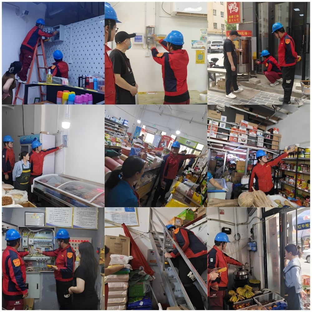活動當(dāng)日,突擊隊(duì)成員分成2個小組,挨家挨戶走進(jìn)商鋪。在一家餐飲店中,趙毅楓仔細(xì)檢查廚房內(nèi)的電線線路,發(fā)現(xiàn)部分電線因長期受油煙侵蝕,絕緣層出現(xiàn)老化破損現(xiàn)象,存在嚴(yán)重的漏電風(fēng)險(xiǎn)。他立即向店主指出問題,并現(xiàn)場指導(dǎo)店主如何正確更換電線,還建議定期對廚房用電設(shè)備進(jìn)行清潔維護(hù)。整個排查過程中,團(tuán)隊(duì)成員對發(fā)現(xiàn)的每一處隱患都詳細(xì)記錄,并向商鋪負(fù)責(zé)人提出風(fēng)險(xiǎn)點(diǎn)與系統(tǒng)性的改進(jìn)方案。