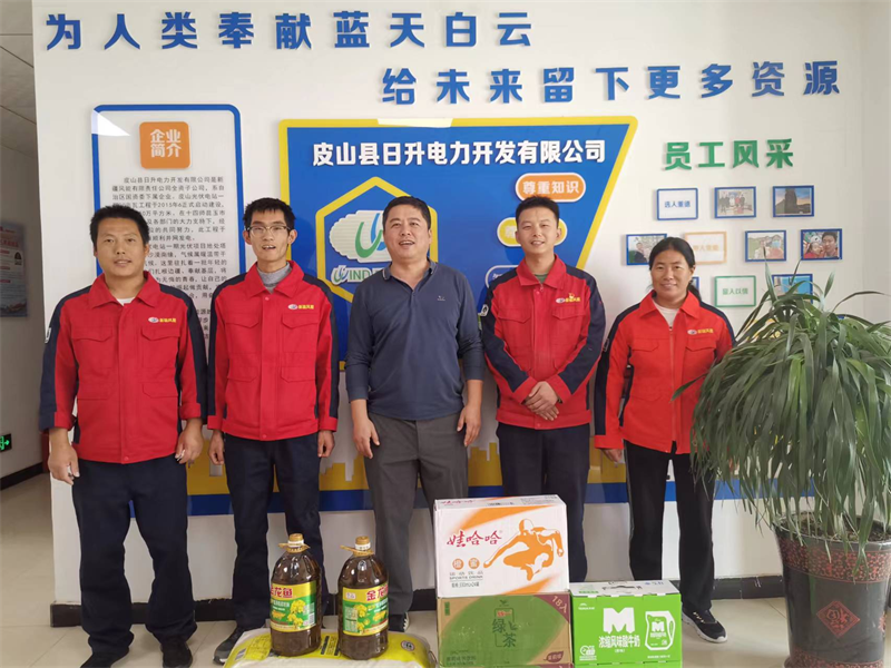 黃樂同志一行首先來到場站,實地了解和田區(qū)域光伏電站的生產(chǎn)運行情況,對和田區(qū)域光伏電站的整體生產(chǎn)情況表示肯定。他強調(diào),場站要嚴格落實安全生產(chǎn)責任,落實安全防范措施,做好光伏發(fā)電設備的日常維護保養(yǎng)工作,干好每一件事,發(fā)好每一度電,為公司完成年度目標添磚加瓦。隨后,黃樂同志代表公司向大家送上了問候與祝福,并發(fā)放慰問品,讓大家感受到了公司的關懷。